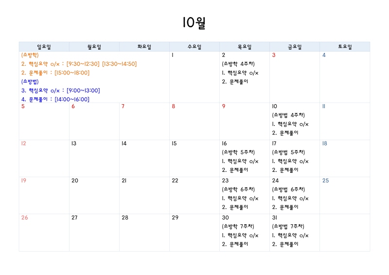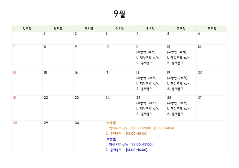 2026대비 소방학개론·소방관계법규 9-10월 수업 일정