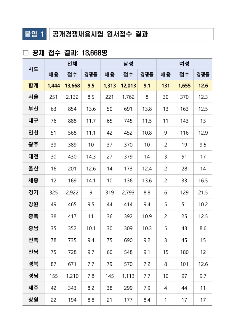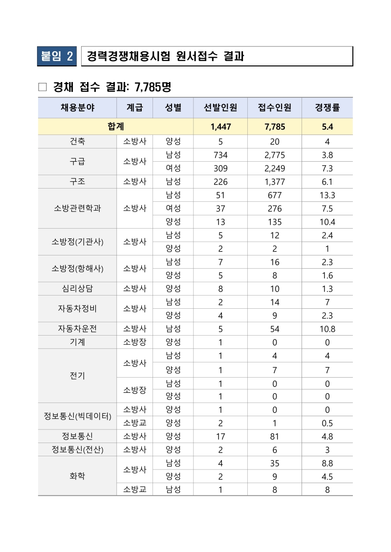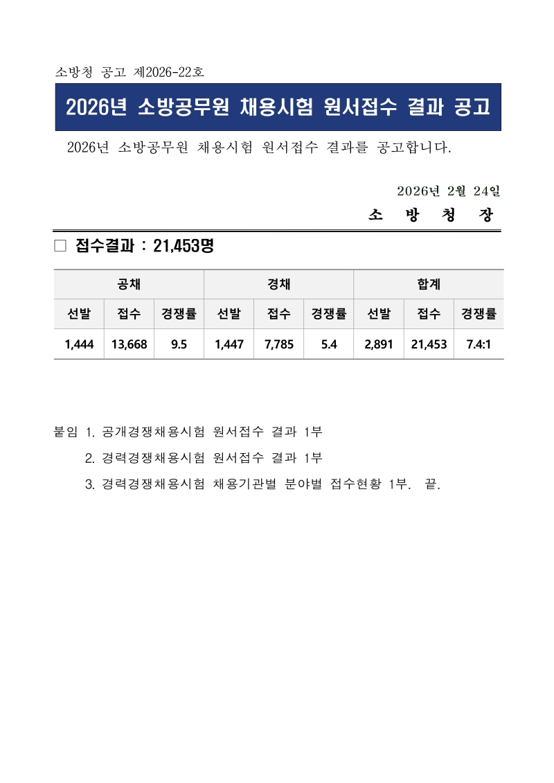 2026년 소방공무원 채용시험 원서접수 결과 공고