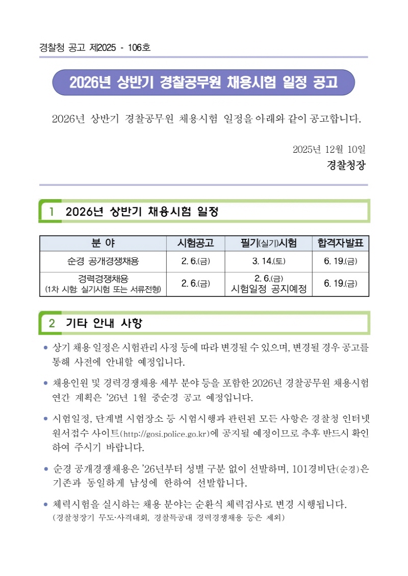 ★2026년 상반기 경찰공무원 채용시험 일정 공고문.hwp