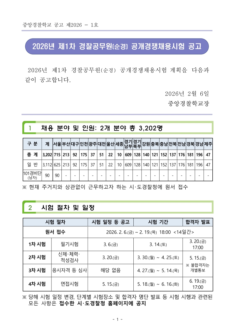 2026년 제1차 경찰공무원 공개경쟁채용시험 공고